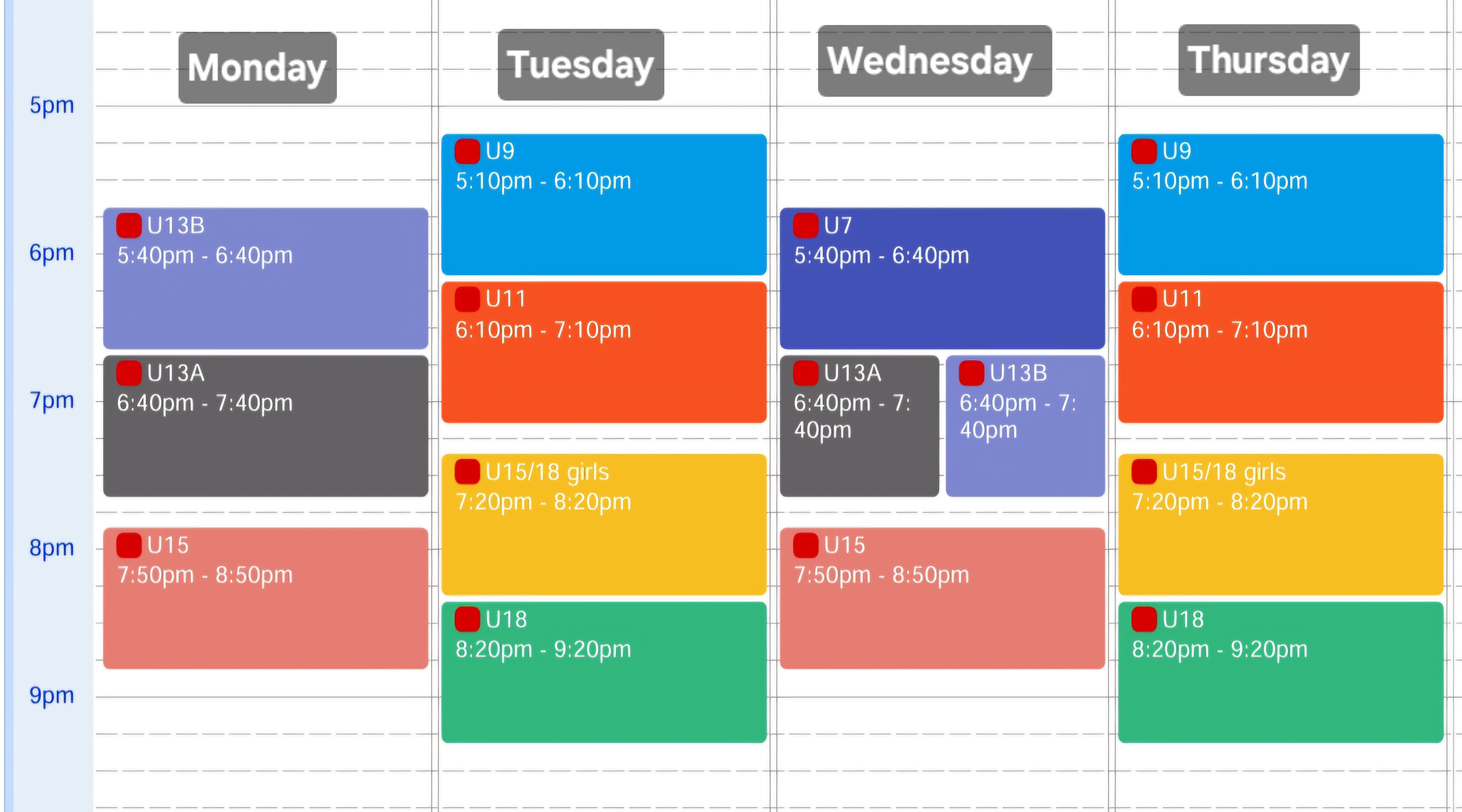 Practice schedule